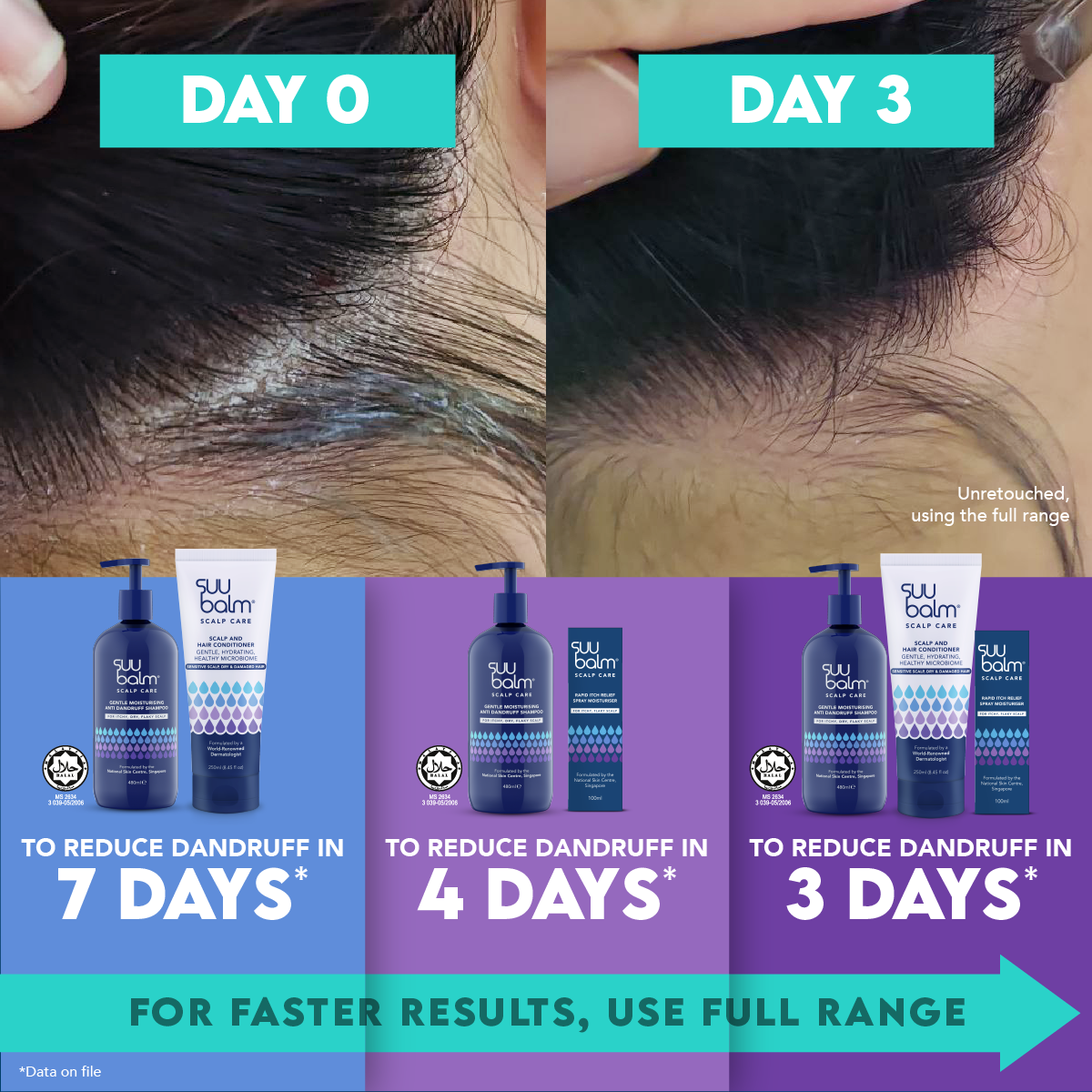 为达到最佳去屑效果,请与 Suu Balm 柔和去屑洗发水和 Suu Balm 快速止痒头皮喷雾润肤霜配合使用。